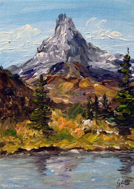 This is a painting of Matterhorn Mountain in Switzerland. A beautiful peak that overlooks the Swiss town of Zermatt to the north-east, and the Italian town of Breuil-Cervinia to the south. This is a 10 minute painting done as part of a 30 paintings in 30 days challenge I did January 2016. It turned out to be a favorite of mine.