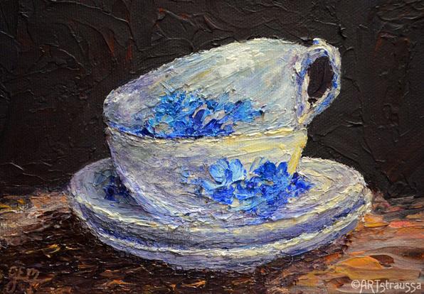Maybe it's a visit from an old friend, or a family member stopping by for a chat, whatever the reason, these tea cups are ready for company. I chose to paint these to practice working with white, a color not so easily mastered.